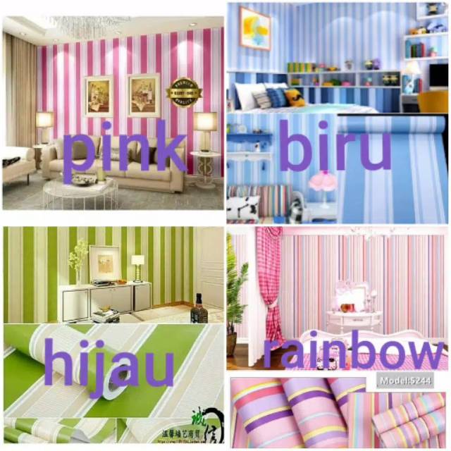 Wallpaper dinding salur pink, hijau, biru, ungu, pelangi ...